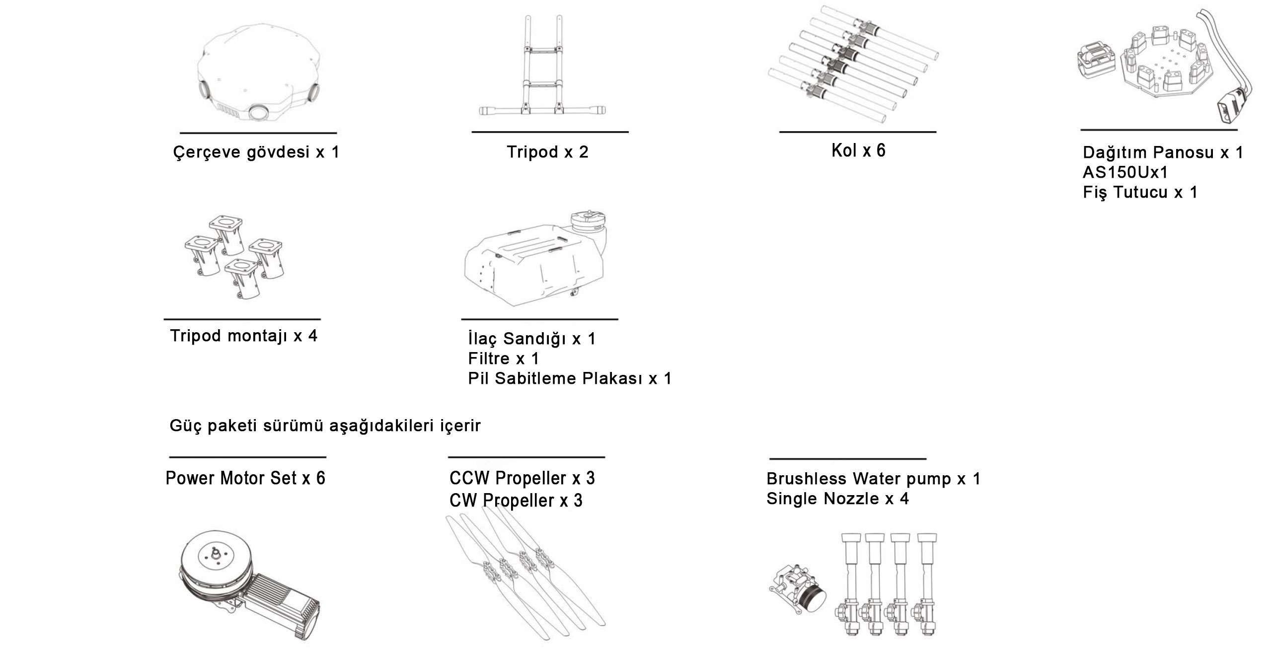 - Güç sisteminin kremayer ve pervane kanatlarını yerleştirmek için kullanılabilen köpük ambalaj kutusu.